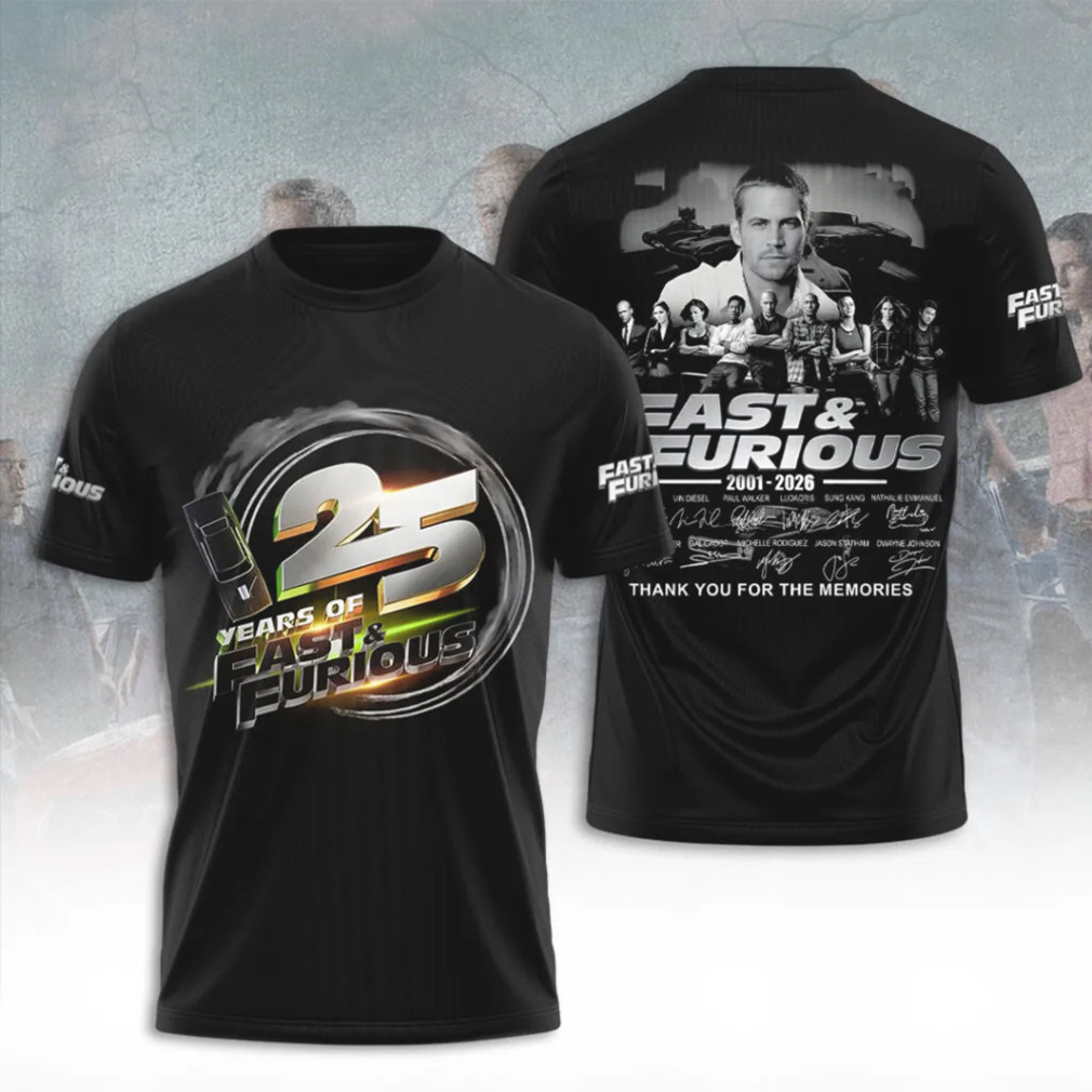 ▶️ About Fast and Furious 25 Years 2001 2026 Anniversary Commemorative Paul Walker Tribute Hoodie – 3D T-Shirt