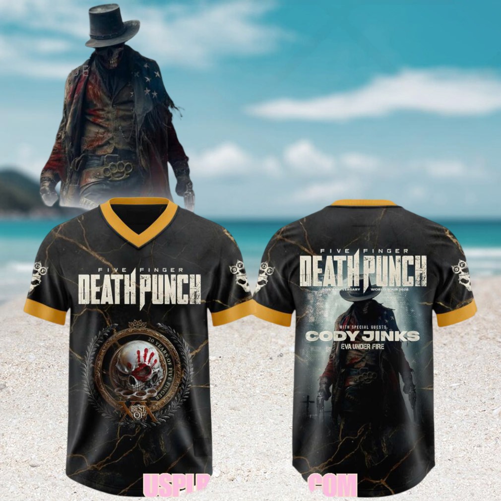 ()Five Finger Death Punch 20th Anniversary World Tour 2026 Signature Black Baseball Jersey, V-neck, Sweater Hoodie and Long Sleeve tee