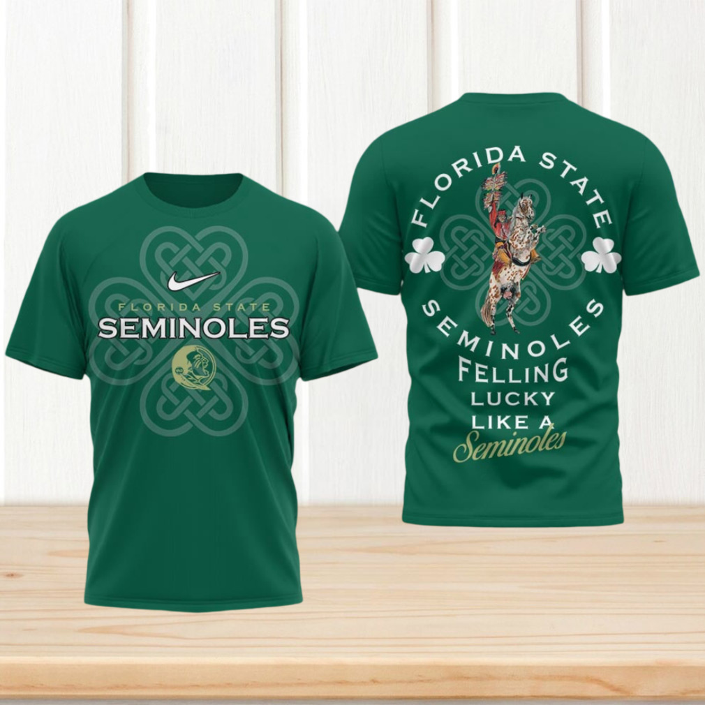 ()▶️ About Florida State Seminoles St. Patrick's Day Lucky Green Clover Performance Fan Shirt – 3D T-Shirt