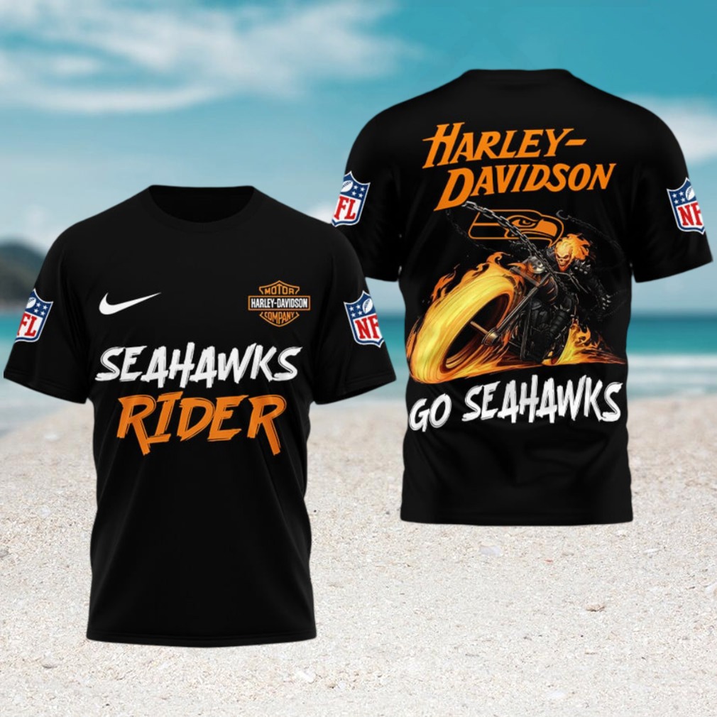 ()▶️ About Ghost Rider Harley Davidson Seattle Seahawks Marvel Superhero Biker T Shirt – 3D T-Shirt