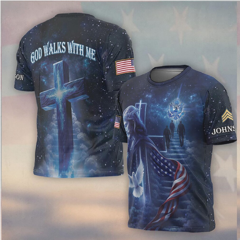 God Walks With Me US Army Patriotic Cross Dove Galaxy Shirt