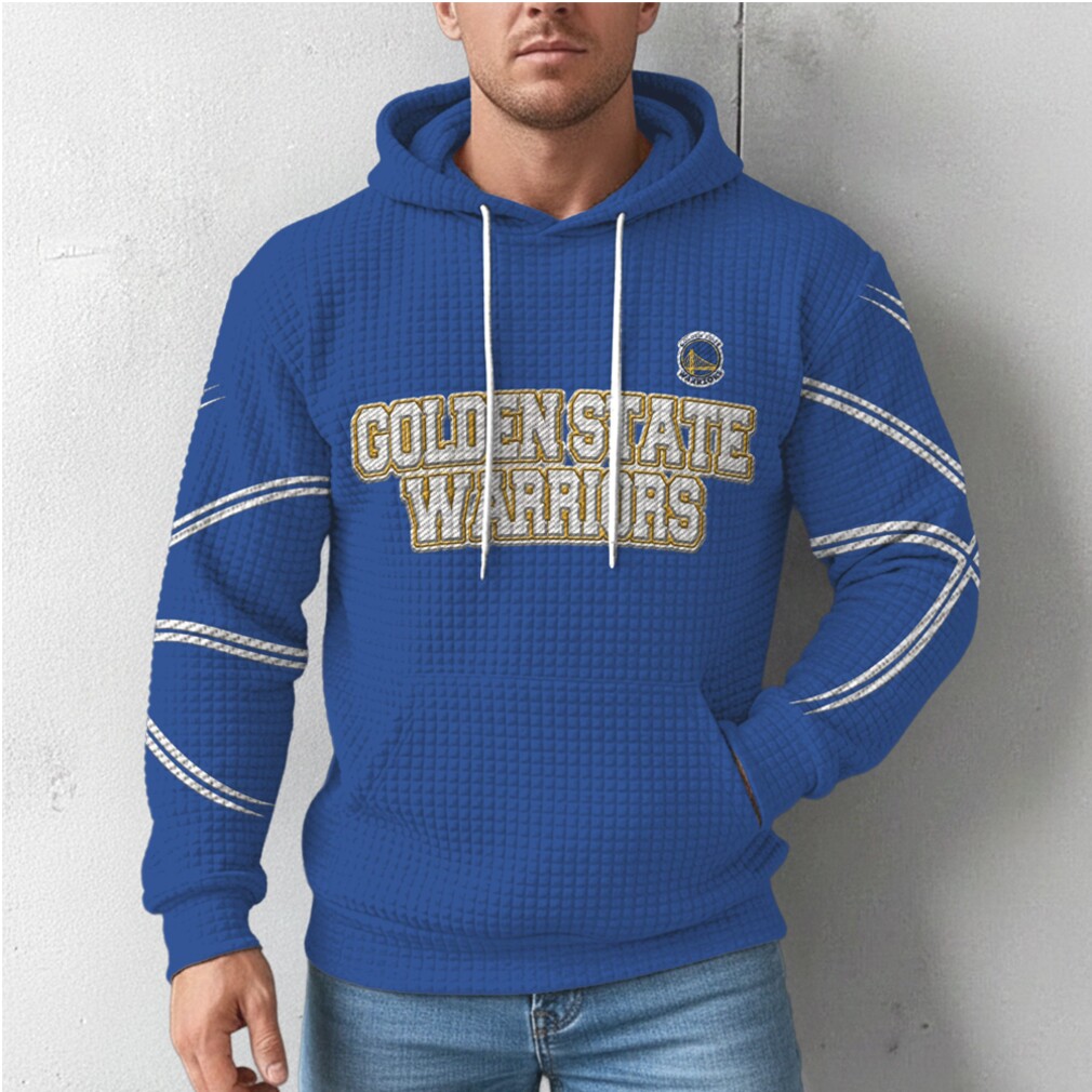 Golden State Warriors Blue Waffle Knit Hoodie Vintage NBA Game Day Fan Apparel Hoodie
