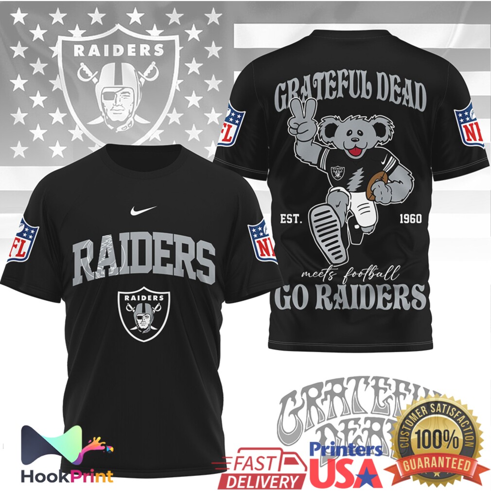 ▶️ About Grateful Dead x Las Vegas Raiders Dancing Bear NFL T Shirt – 3D T-Shirt