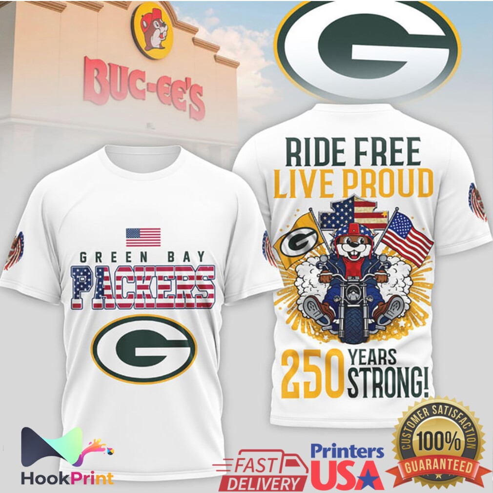 ▶️ About Green Bay Packers Buc ee's Biker Ride Free Live Proud 250 Years Strong T Shirt – 3D T-Shirt