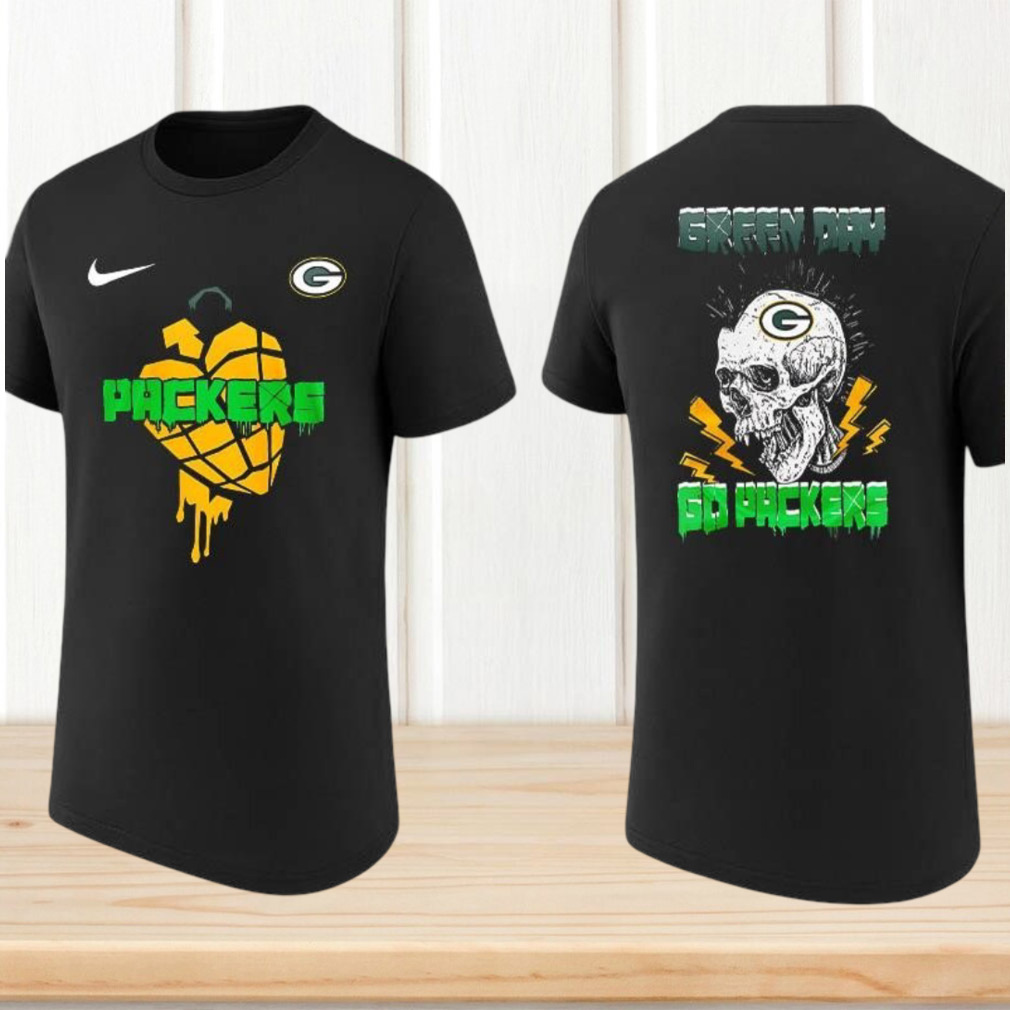 ()▶️ About Green Bay Packers Green Day Rock Band Mashup Vintage Yellow Heart T Shirt – 3D T-Shirt