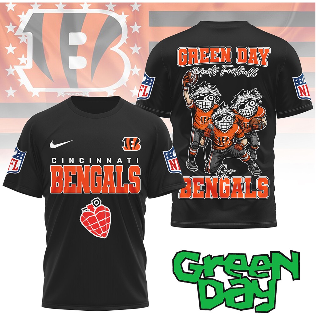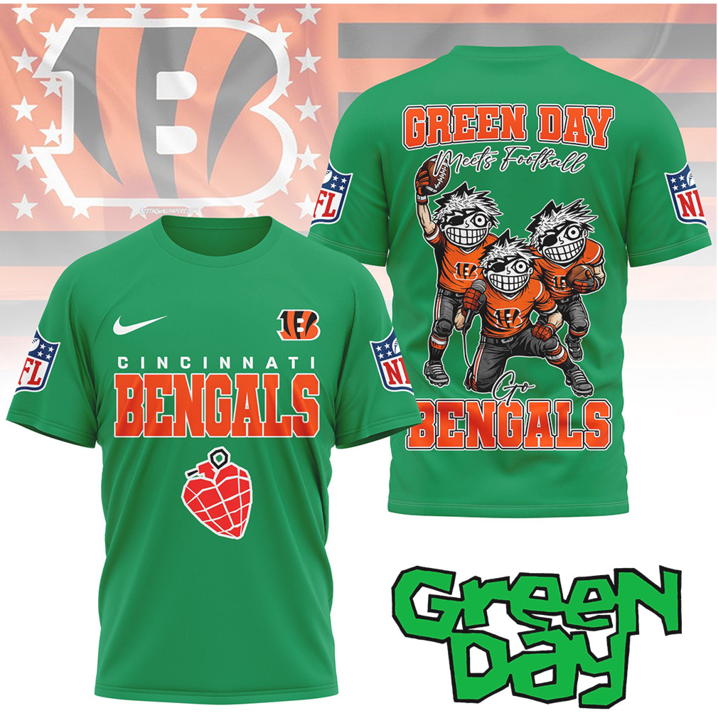 ()▶️ About Green Day x Cincinnati Bengals Green Day Meets Football T Shirt – 3D T-Shirt