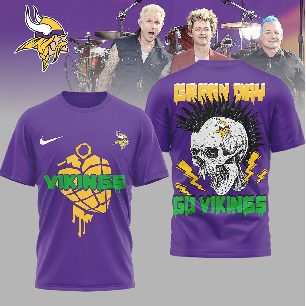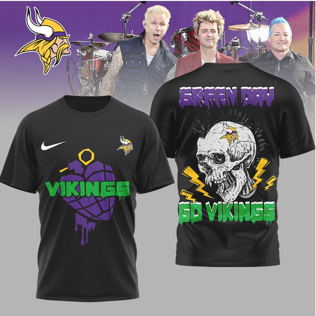()▶️ About Green Day x Minnesota Vikings Go Vikings Skull Punk T Shirt – 3D T-Shirt