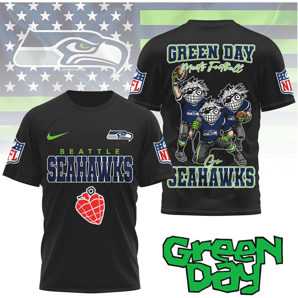 ()▶️ About Green Day x Seahawks Green Day Meets Football Cartoon T Shirt – 3D T-Shirt