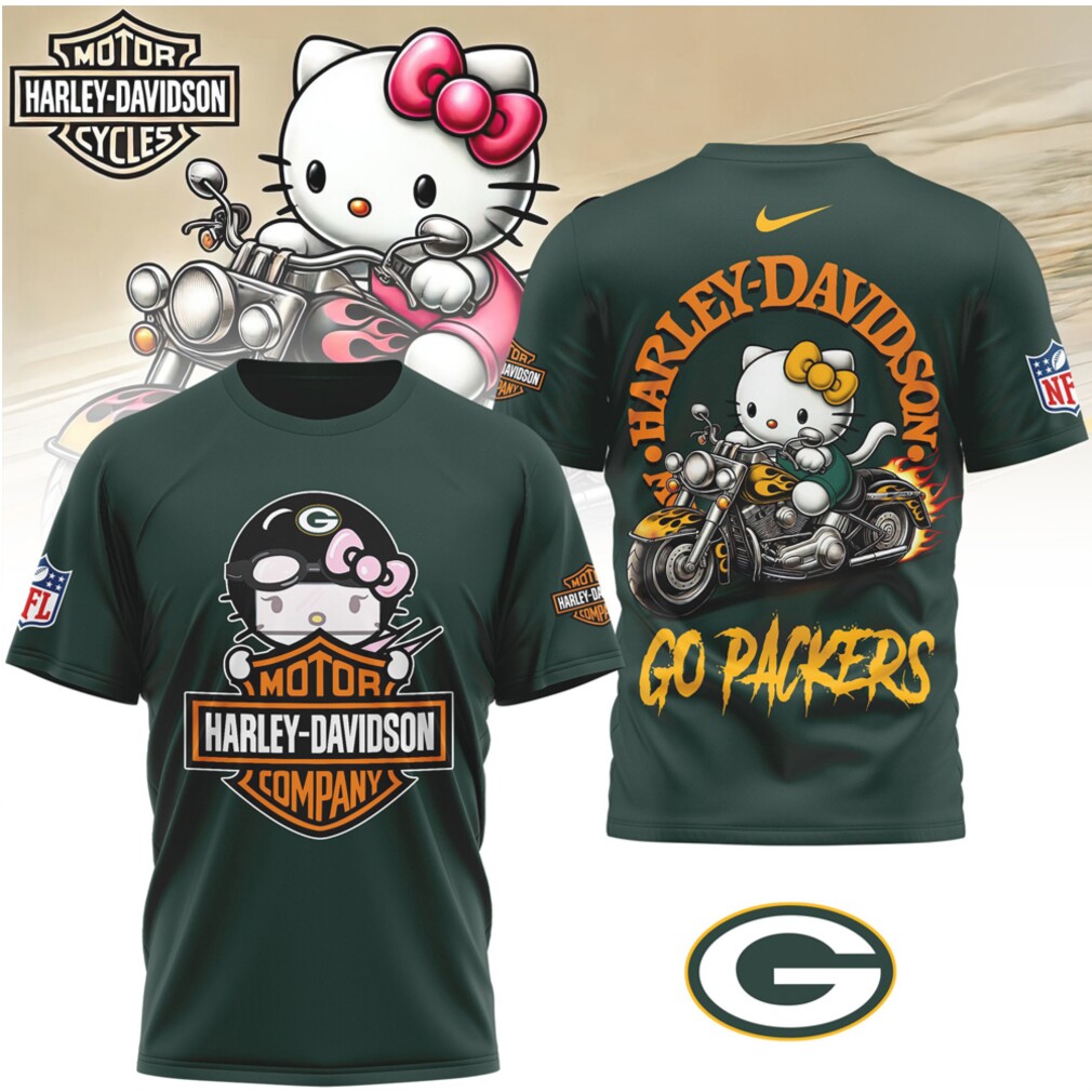▶️ About Hello Kitty x Harley Davidson x Green Bay Packers NFL Biker T Shirt – 3D T-Shirt