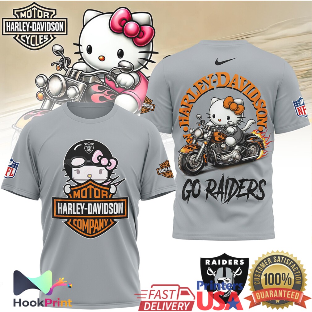 ▶️ About Hello Kitty x Harley Davidson x Las Vegas Raiders Go Raiders Mashup T Shirt – 3D T-Shirt