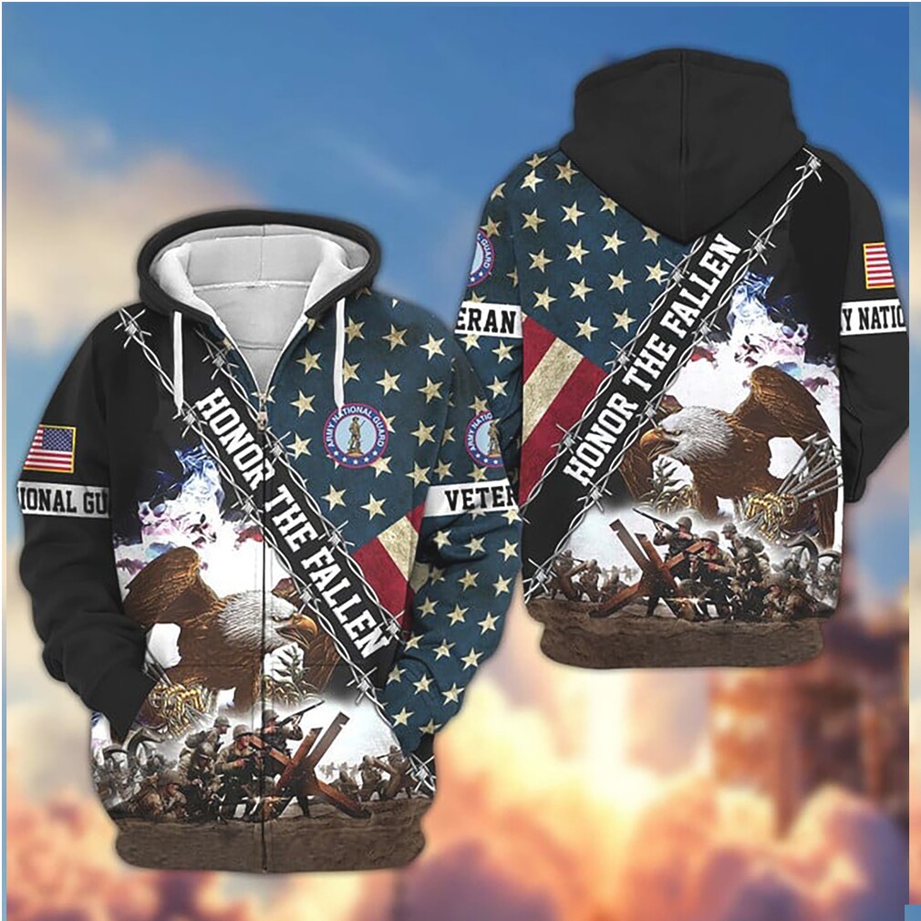 ()Honor The Fallen US Flag Eagle Combat Scene 3D Full Print Zip Hoodie, V-neck, Sweater Hoodie and Long Sleeve tee