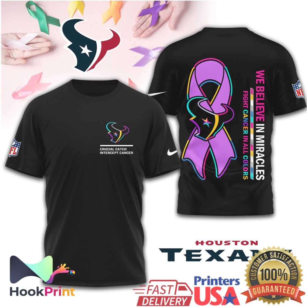 ▶️ About Houston Texans Crucial Catch Intercept Cancer Multi Color Ribbon T Shirt – 3D T-Shirt
