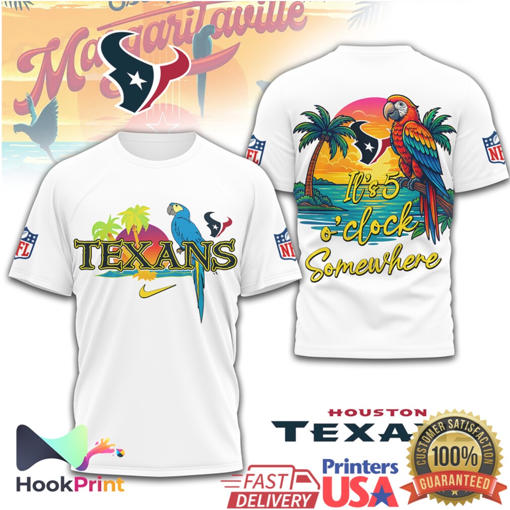 ▶️ About Houston Texans Margaritaville It's 5 O'Clock Somewhere Tropical Parrot T Shirt – 3D T-Shirt