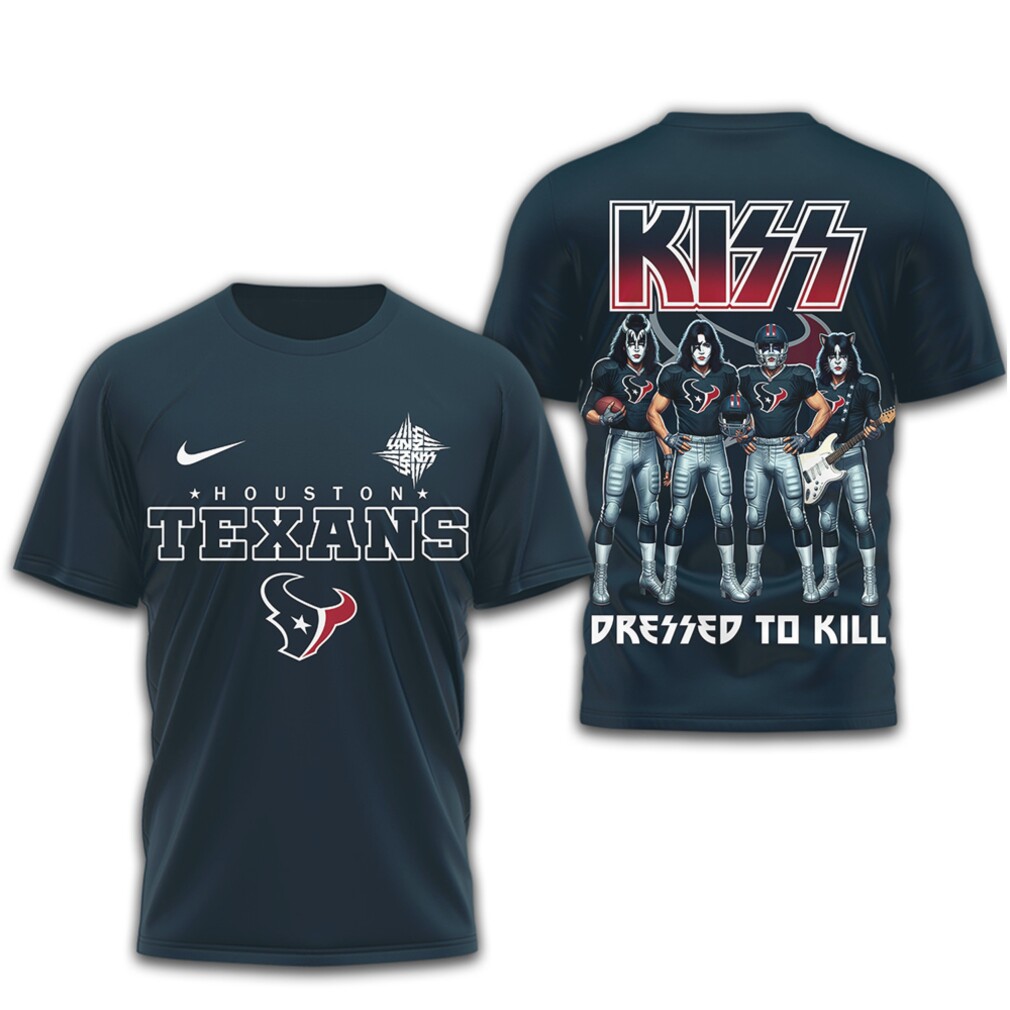 ▶️ About Houston Texans x KISS Dressed To Kill Rock Band NFL Graphic T Shirt – 3D T-Shirt