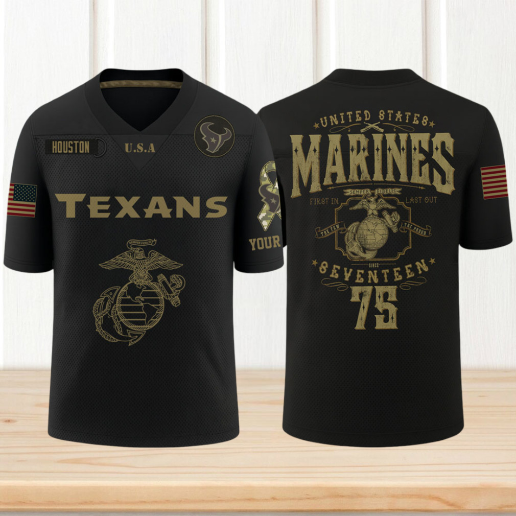 ▶️ About Houston Texans x U.S Marine Corps Dark Gameday Jersey – 3D T-Shirt