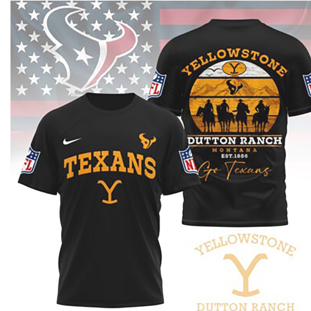 ▶️ About Houston Texans Yellowstone Dutton Ranch Montana Mashup T Shirt – 3D T-Shirt
