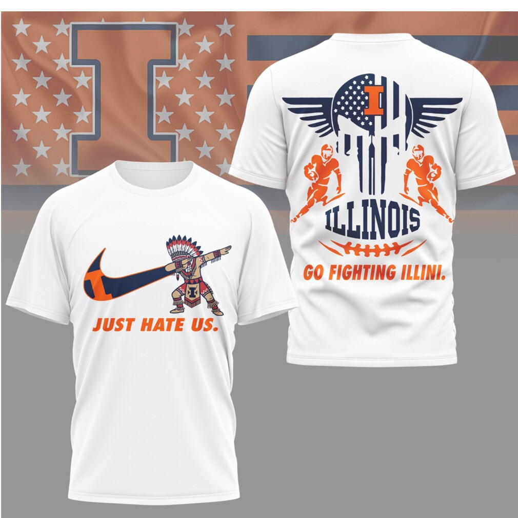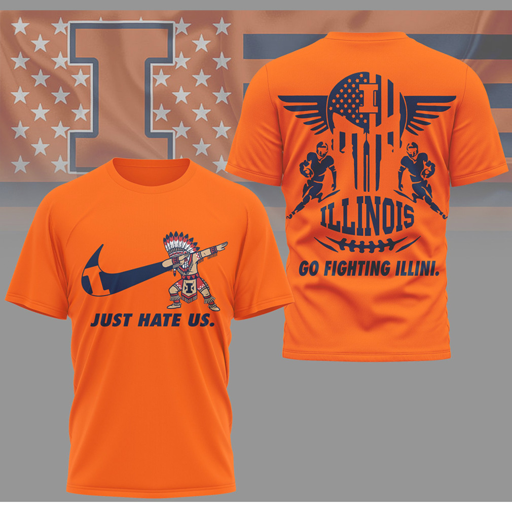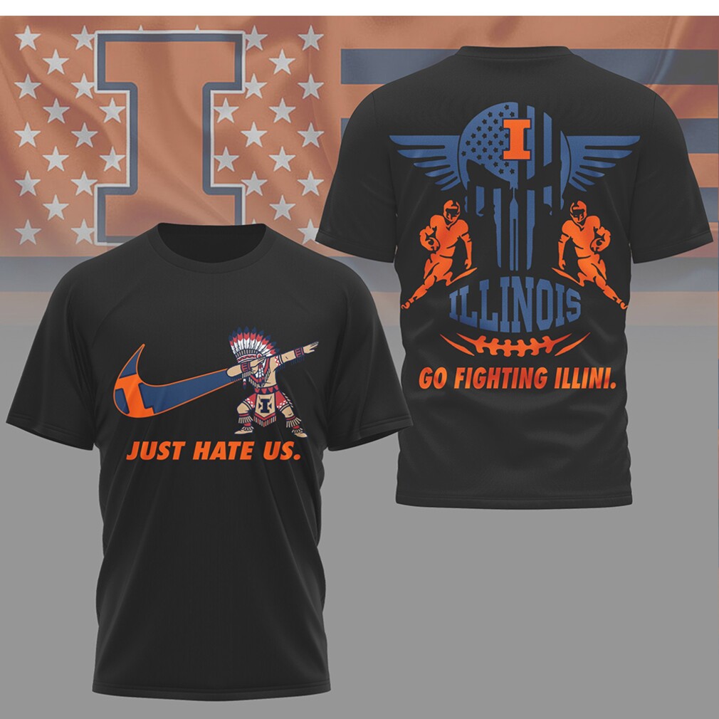 ▶️ About Illinois Fighting Illini “Just Hate Us” Dabbing Mascot Gameday T Shirt – 3D T-Shirt