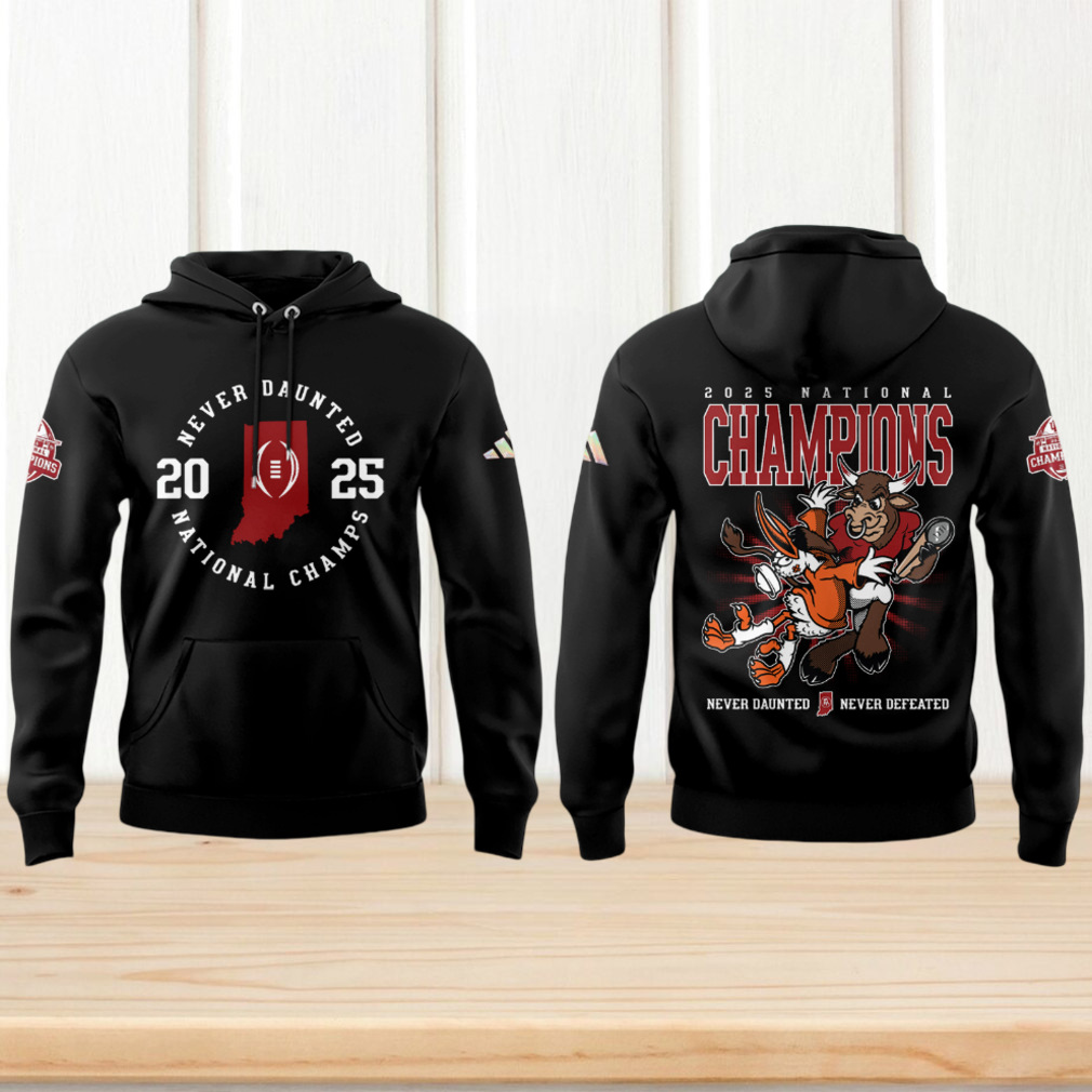 This doubt doesn’t surprise Indiana Hoosiers fans anymore. It fuels them. The gatekeeping instinct runs deep in college football. Blueblood status is protected fiercely. Programs without decades of dominance are expected to prove themselves repeatedly—long after others are forgiven for mediocrity. Indiana’s past is weaponized. Historical records resurface. Old Indiana Hoosiers 2025 national champions never daunted black hoodie are recycled. Improvement is minimized. Success is reframed as temporary.