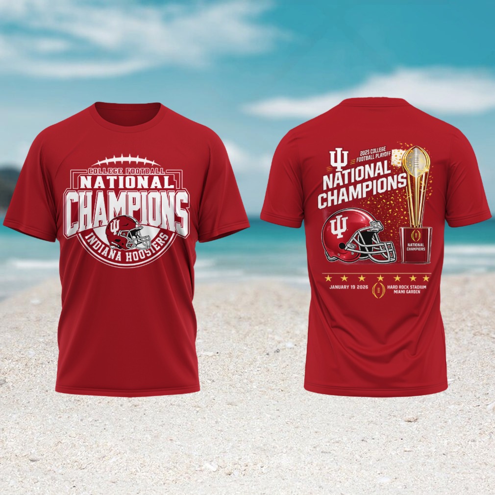 ▶️ About Indiana Hoosiers 2025 national champions trophy miami red tshirt – 3D T-Shirt