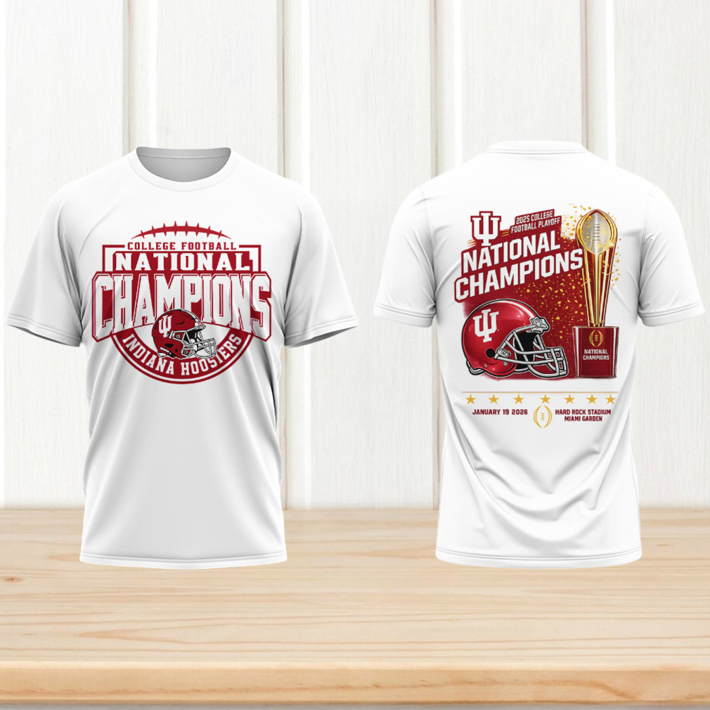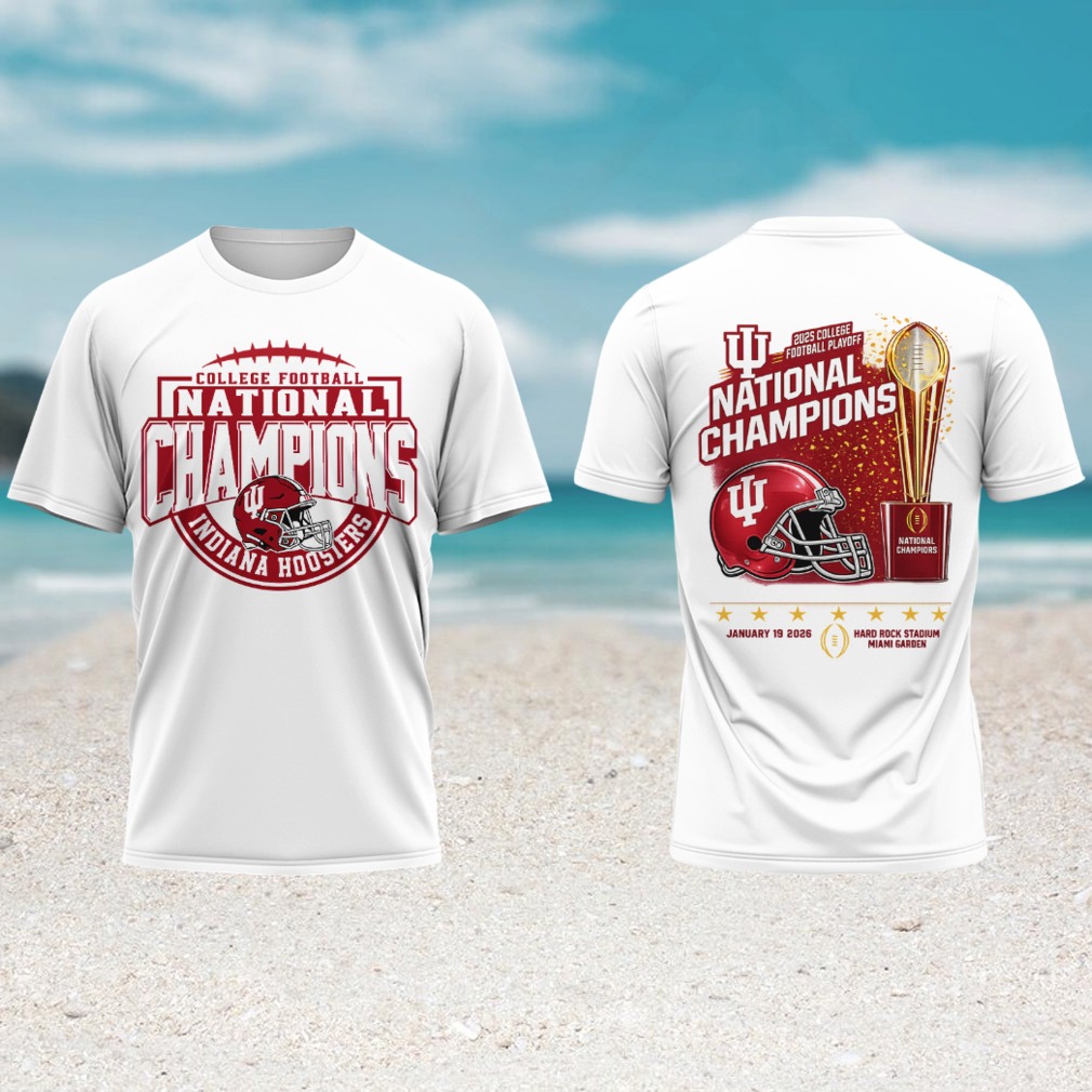 ▶️ About Indiana Hoosiers 2025 national champions trophy miami white tshirt – 3D T-Shirt