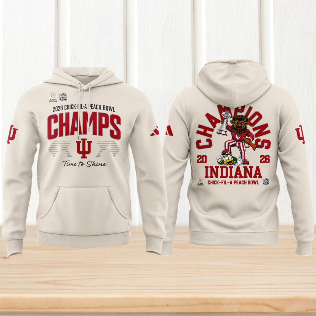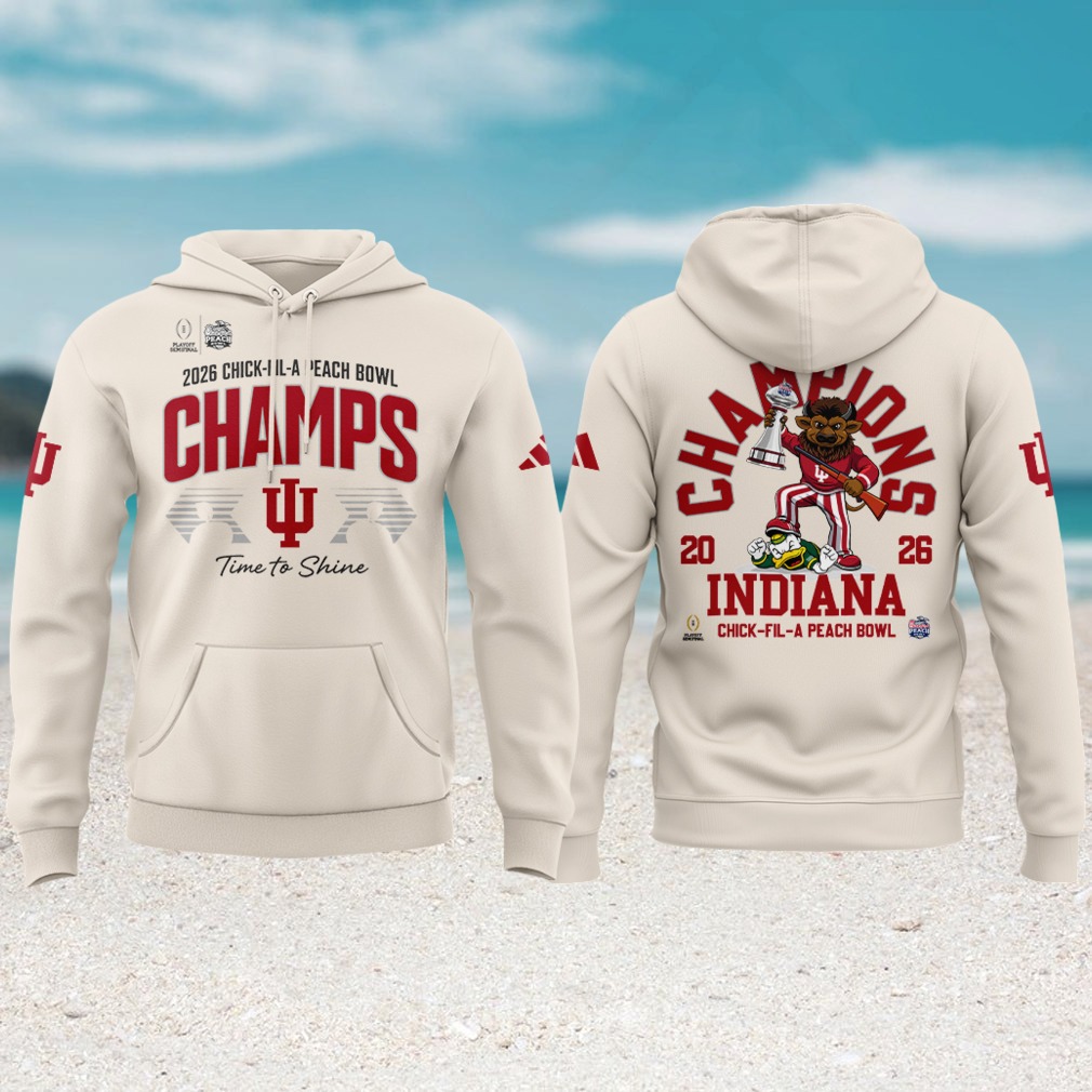 (Hoosiers Champions)Indiana Hoosiers 2026 chick fil a peach bowl champs cream hoodie, V-neck, Sweater Hoodie and Long Sleeve tee