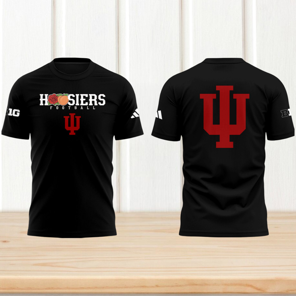 The rise didn’t feel gradual. It felt cinematic. One season blurred into the next, and suddenly Indiana wasn’t a fun story anymore. It was a problem. A system. A standard. A team that didn’t just win games, but controlled them. For those watching the transformation, buying Indiana Hoosiers football black tshirt rose peach bowl logo became a way to mark the shift from a miracle-based program to one built on repetition, discipline, and precision. The kind of football that travels.