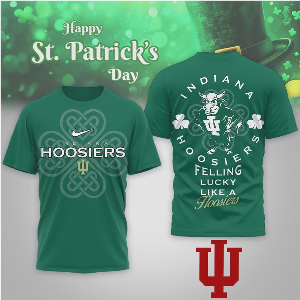 ()▶️ About Indiana Hoosiers St. Patrick's Day Lucky Like A Hoosier Mascot Fan Shirt – 3D T-Shirt