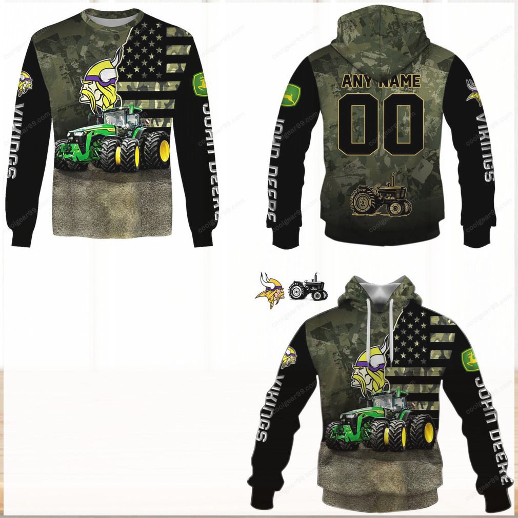 ▶️ About John Deere Minnesota Vikings Camo Apparel Collection Hoodie – 3D T-Shirt