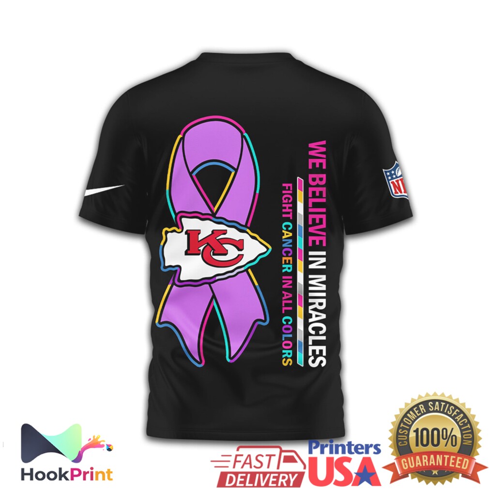 ▶️ About Kansas City Chiefs Crucial Catch Intercept Cancer We Believe In Miracles T Shirt – 3D T-Shirt