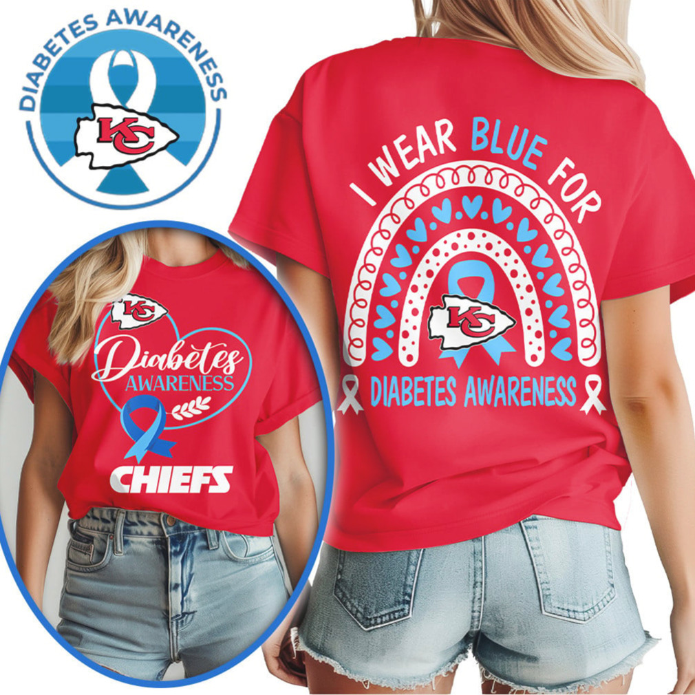 Kansas City Chiefs Diabetes Awareness Blue Ribbon Rainbow Red Fan Gear T Shirt