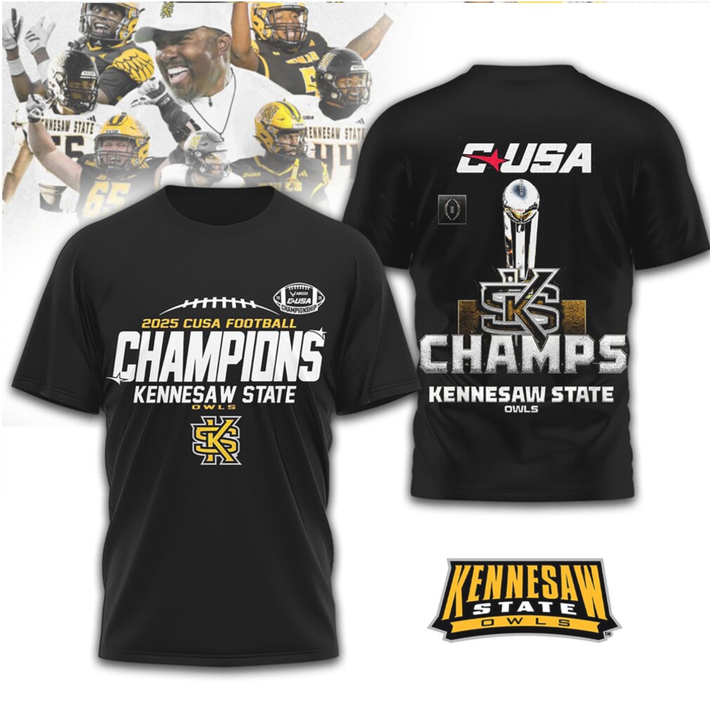 ()Kennesaw State Owls CUSA Football Champions 2025 Graphic Apparel Collection Hoodie, V-neck, Sweater Hoodie and Long Sleeve tee