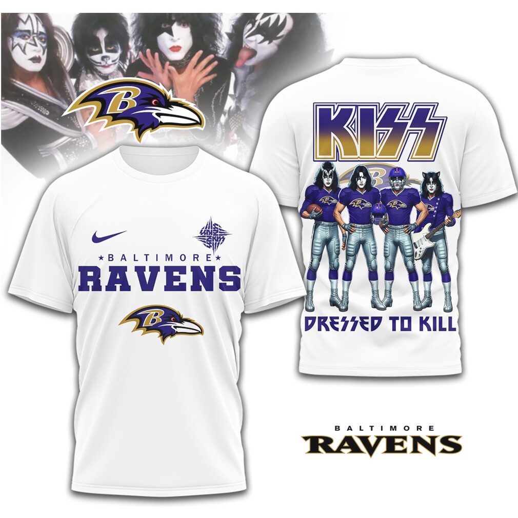 ▶️ About KISS x Baltimore Ravens Dressed To Kill Band Football T Shirt – 3D T-Shirt