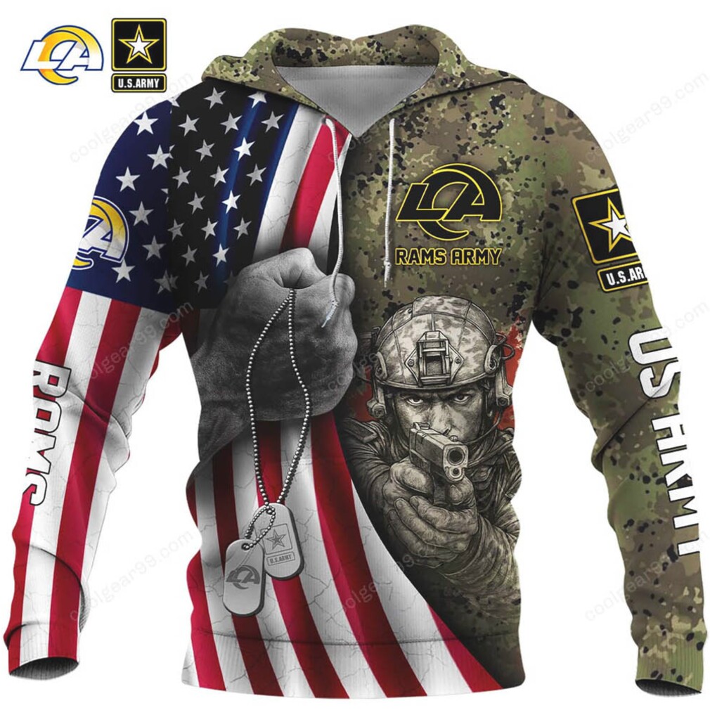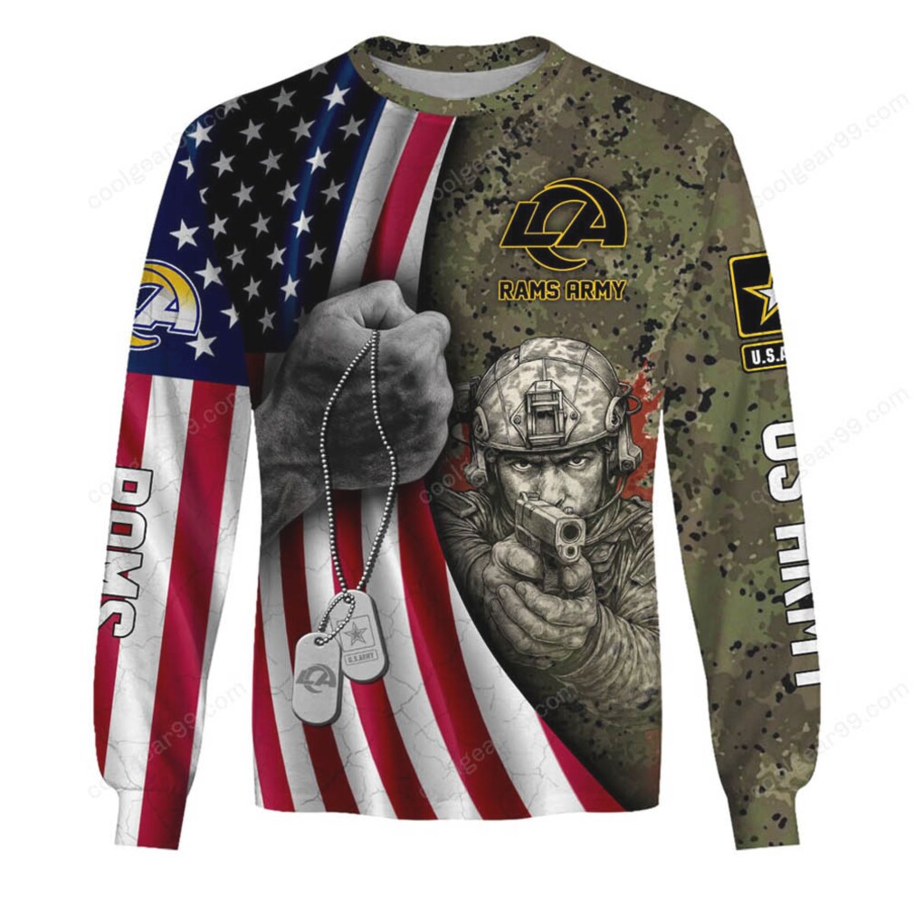 ▶️ About LA rams Proud US Veteran Military Pride American Flag Apparel – 3D T-Shirt
