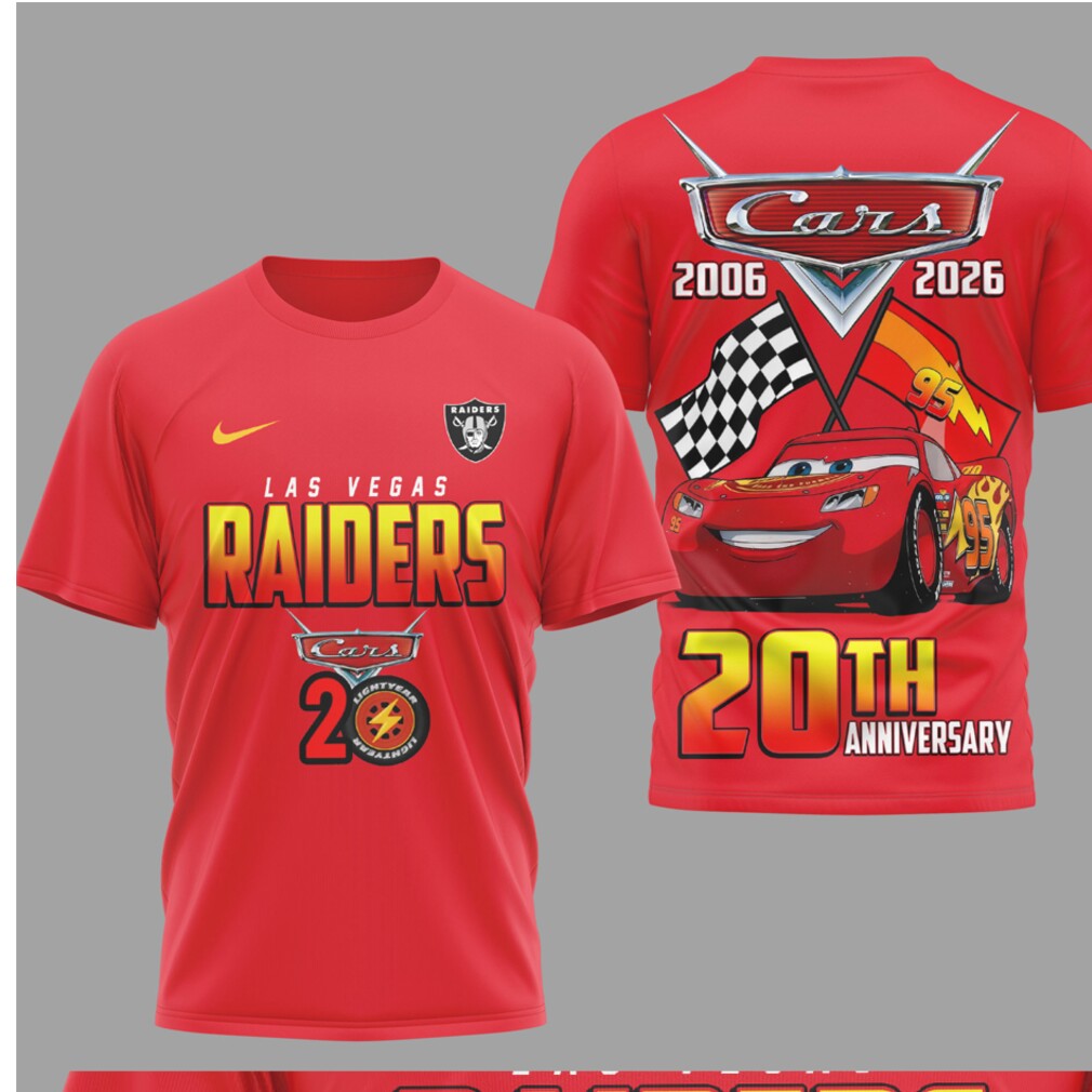 ▶️ About Las Vegas Raiders Disney Cars 20th Anniversary Red Racing Graphic Lightning McQueen T Shirt – 3D T-Shirt