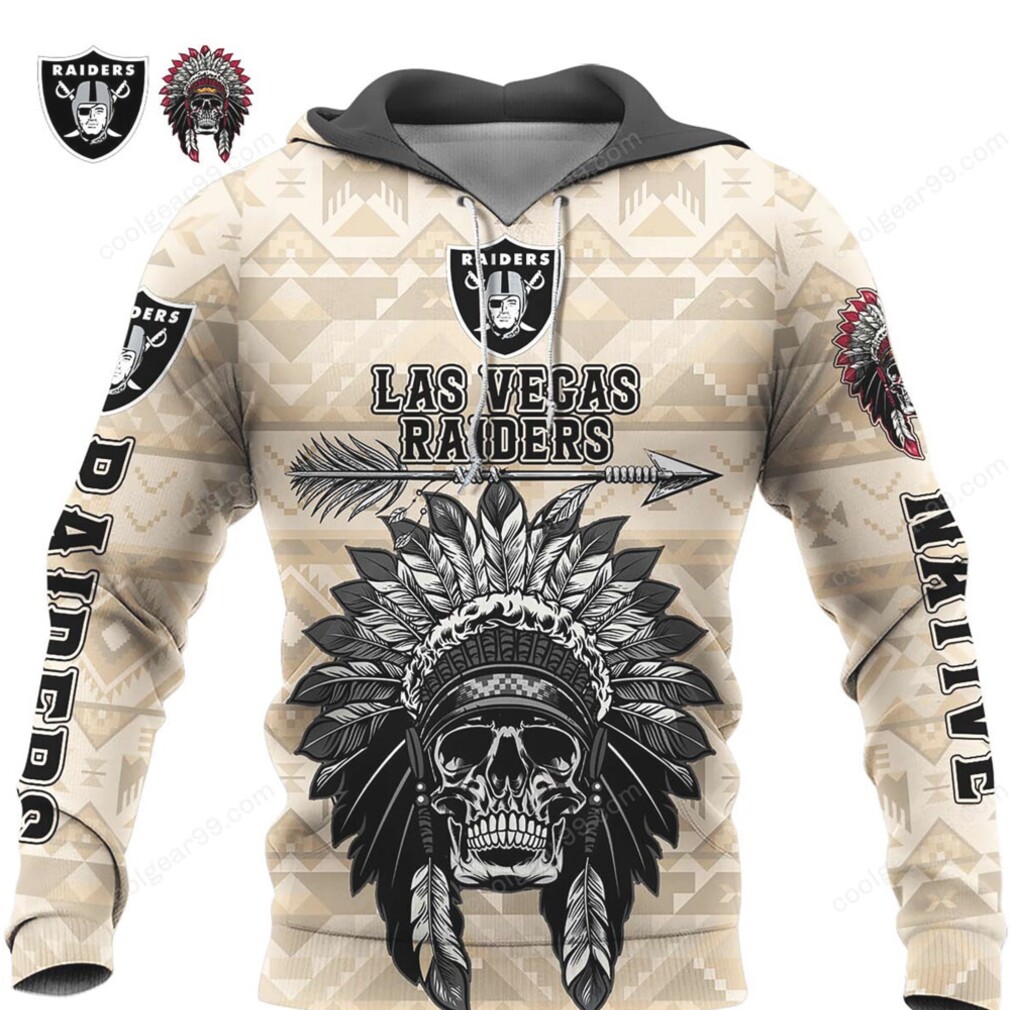 ▶️ About Las Vegas Raiders Skull Native NFL Hoodie – 3D T-Shirt