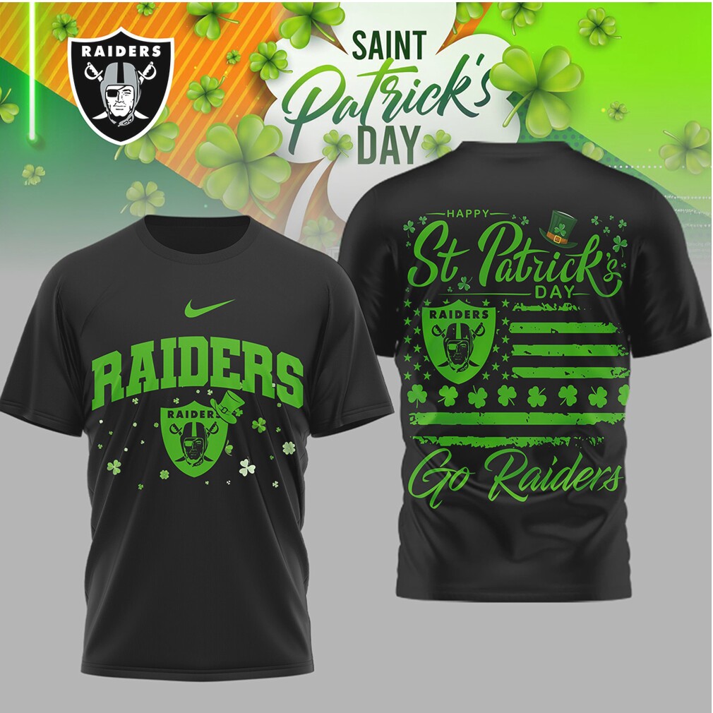 ()▶️ About Las Vegas Raiders St. Patrick's Day Go Raiders Shamrock T Shirt – 3D T-Shirt