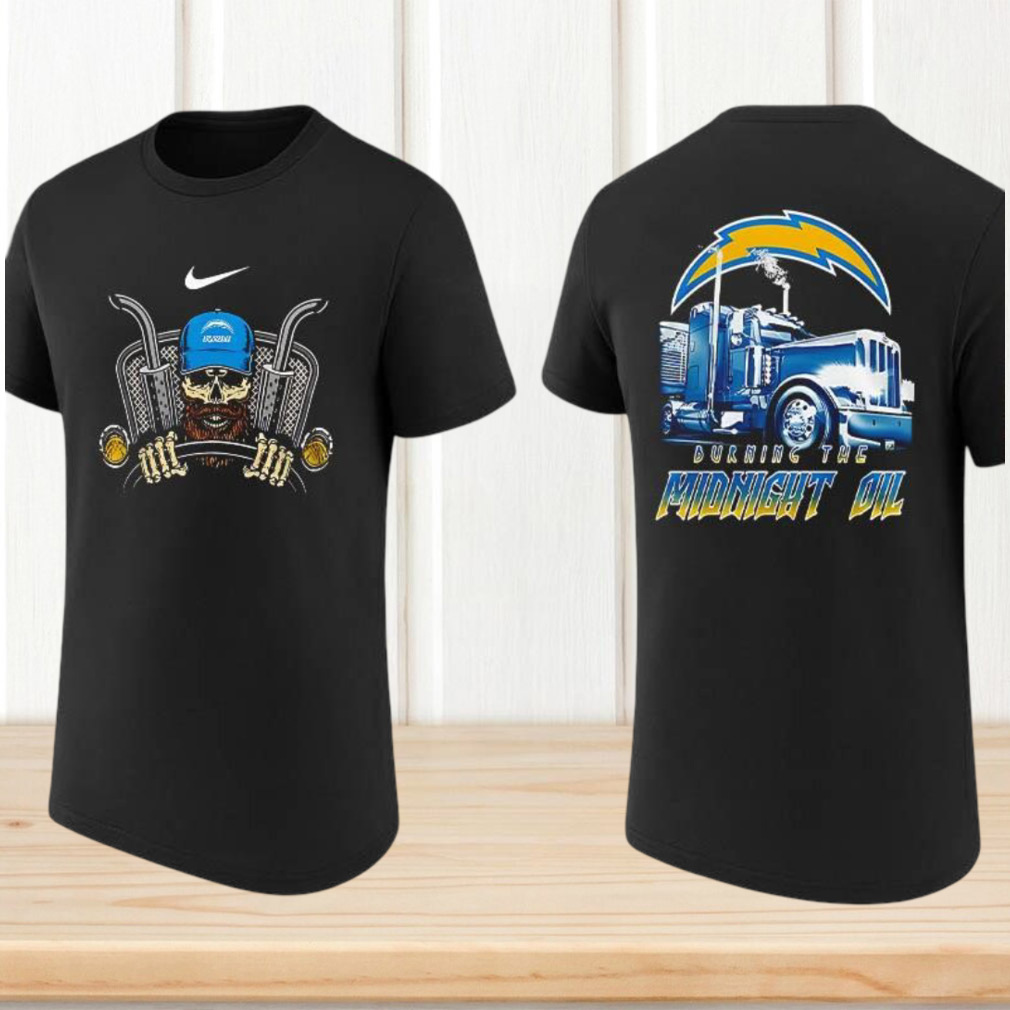 The idea that the team “did this to itself” sat at the center of the reaction. That framing is important because it strips away external explanations. Officiating, injuries, luck, or circumstance were not viewed as primary drivers of the outcome at an emotional level. Instead, the loss reinforced the belief that structural issues, decision-making flaws, and mental lapses define the Los Angeles Chargers Burning The Midnight Oil Trucker Skull Football Fan T Shirt organization in high-leverage moments. When fans or observers reach that conclusion, frustration transforms into cynicism.