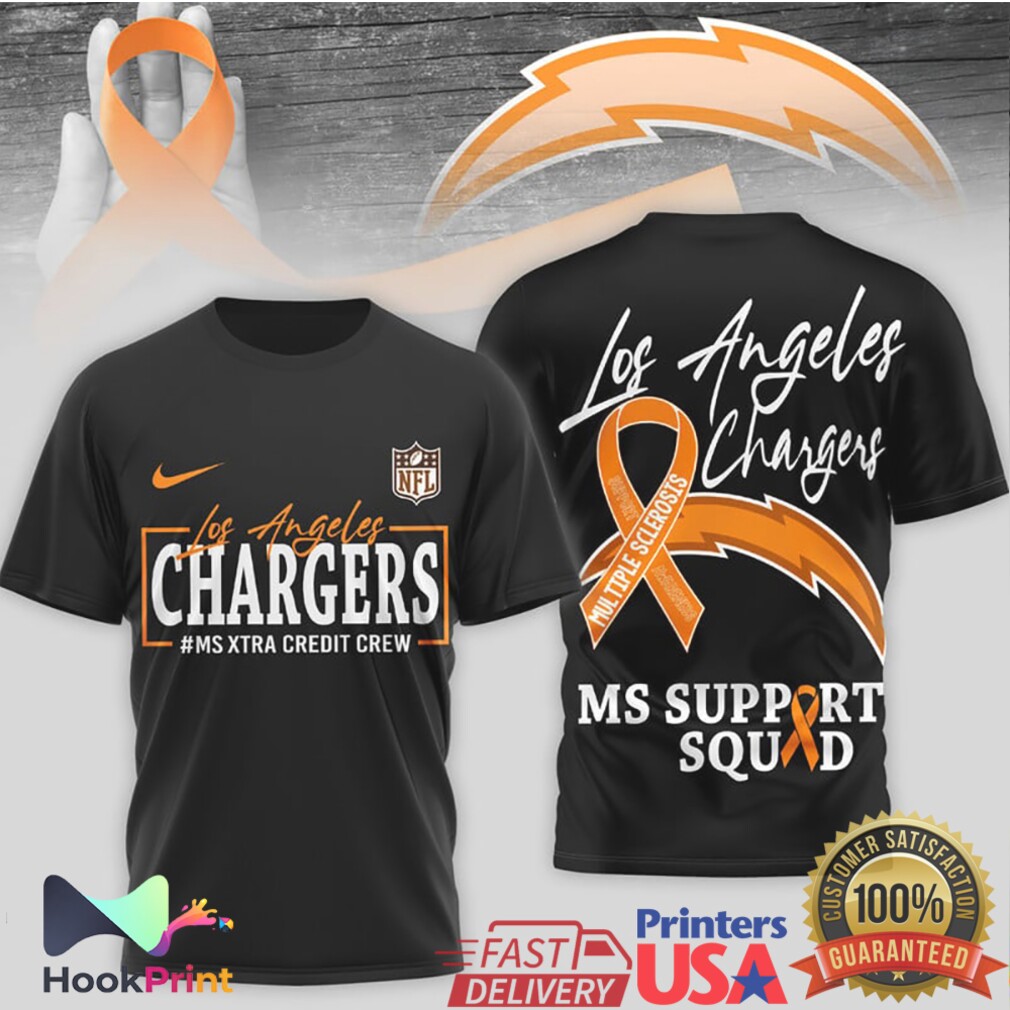 ▶️ About Los Angeles Chargers MS Awareness Orange MS Support Squad Ribbon T Shirt – 3D T-Shirt