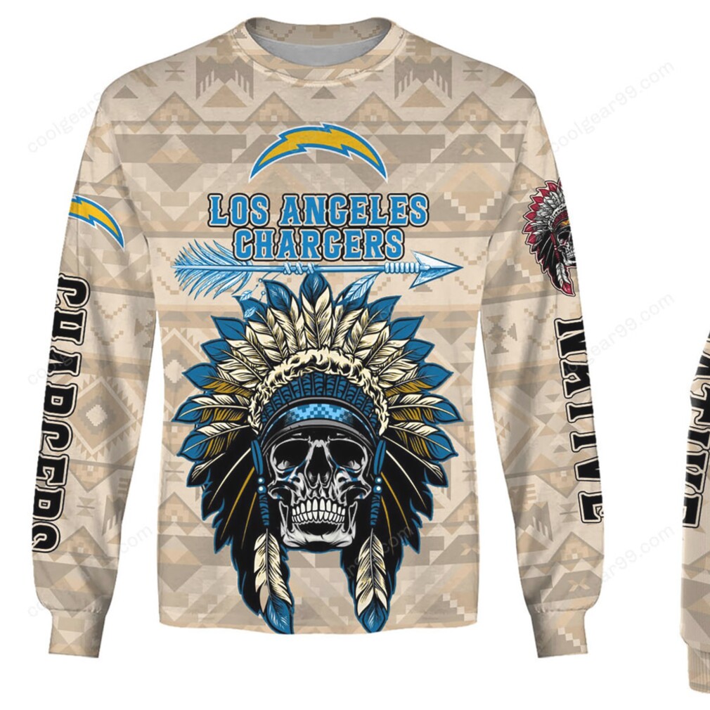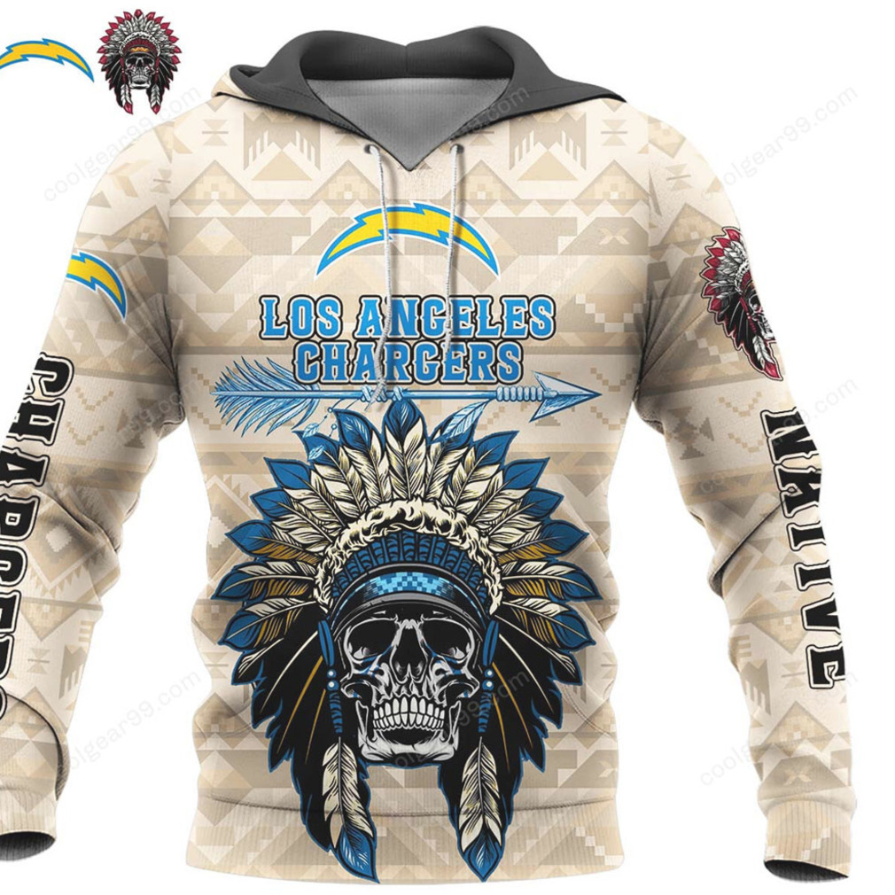 ▶️ About Los Angeles Chargers Native American Skull Headdress Apparel Hoodie – 3D T-Shirt
