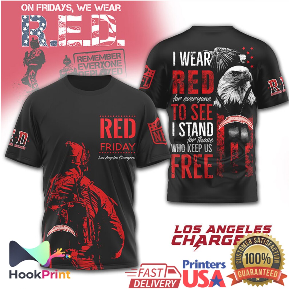 ▶️ About Los Angeles Chargers RED Friday I Stand For Those Who Keep Us Free Shirt – 3D T-Shirt