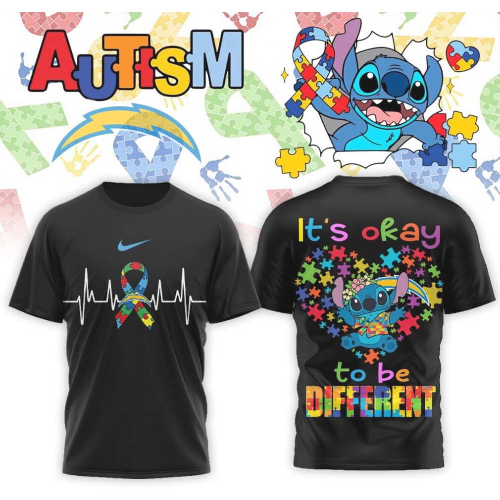 ▶️ About Los Angeles Chargers Stitch Autism Awareness It's Okay To Be Different Powder Shirt – 3D T-Shirt