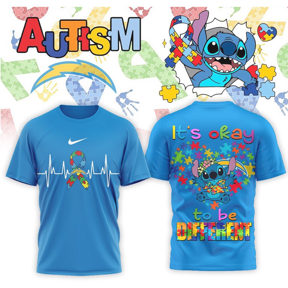 ()Los Angeles Chargers Stitch Autism Awareness It’s Okay To Be Different Powder Shirt, V-neck, Sweater Hoodie and Long Sleeve tee