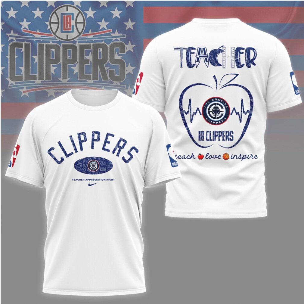()▶️ About Los Angeles Clippers Teacher Appreciation Shirt Teach Love Inspire Pro Basketball Apparel Shirt – 3D T-Shirt