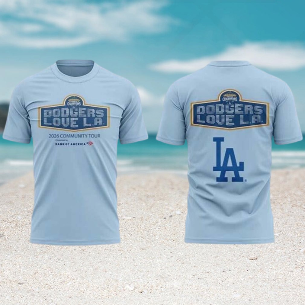 ()▶️ About Los Angeles Dodgers 2026 Community Tour Bank Of America Champions Light Blue T Shirt – 3D T-Shirt