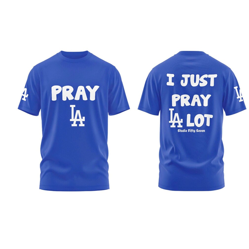 Los Angeles Dodgers I Just Pray LA Lot Blue Fan T Shirt