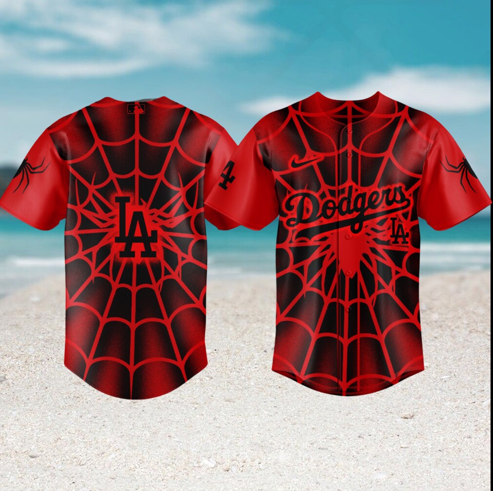 ▶️ About Los Angeles Dodgers Spider Web Red & Black Graphic Baseball Jersey – 3D T-Shirt