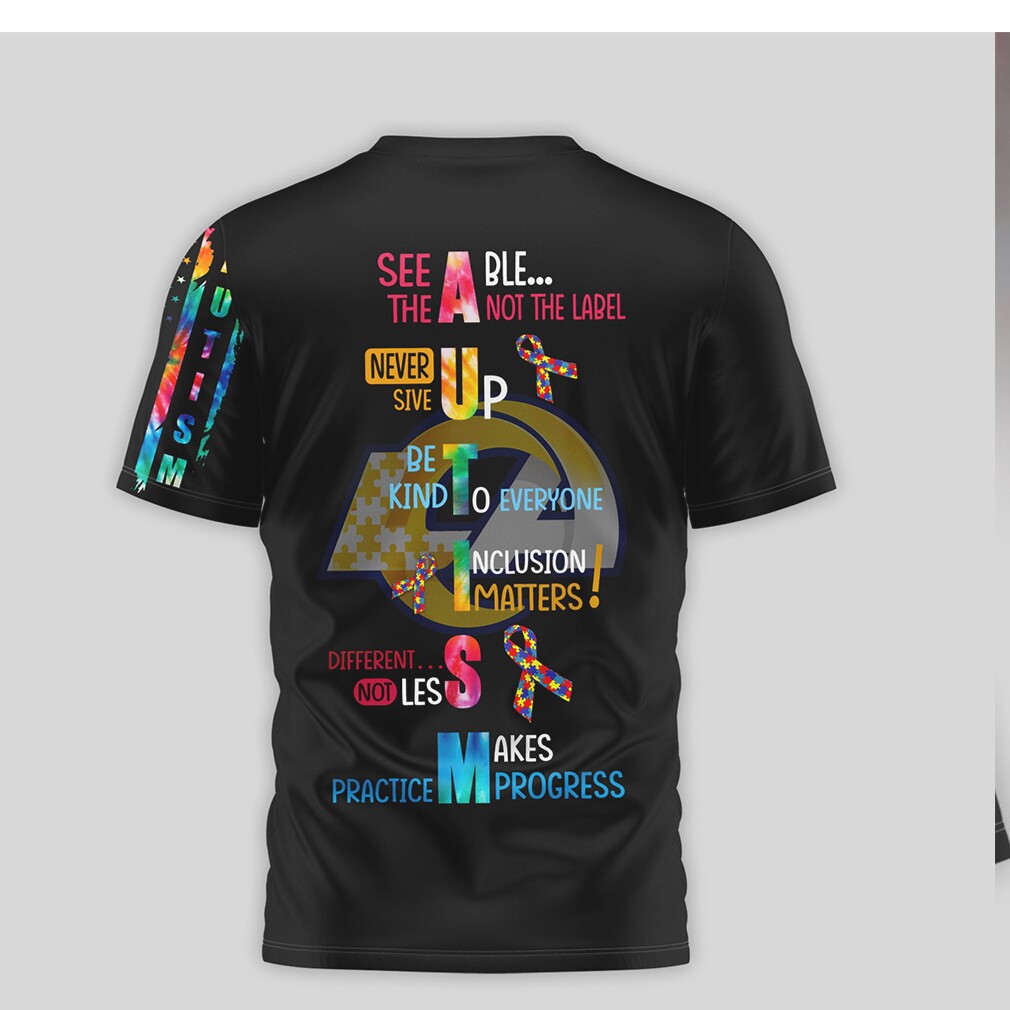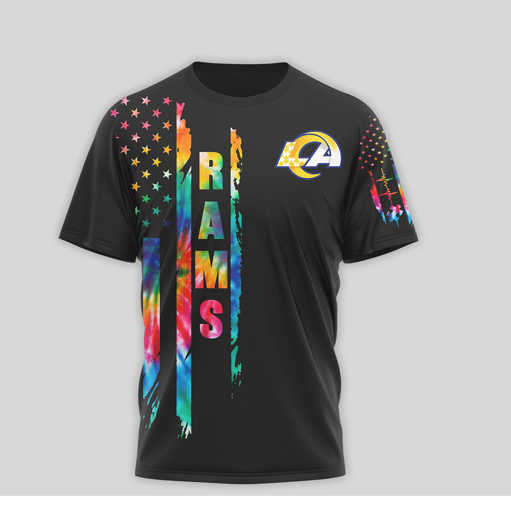 ▶️ About Los Angeles Rams Autism Awareness Tie Dye Stars Stripes T Shirt – 3D T-Shirt