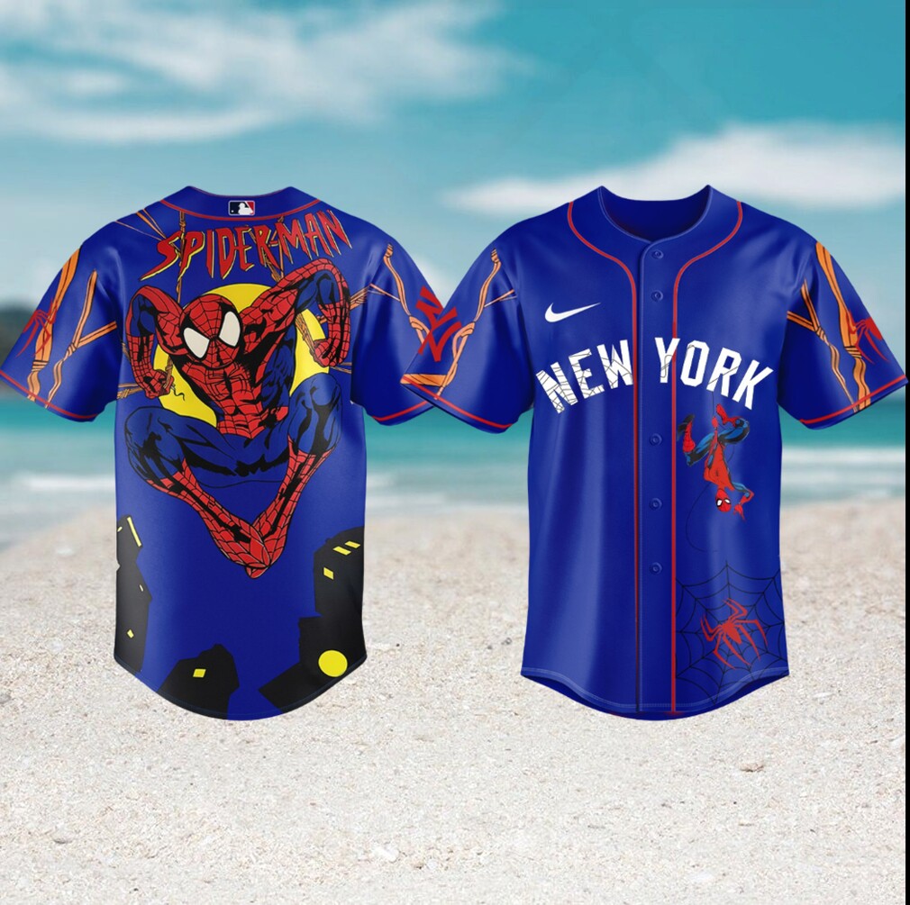 ▶️ About Marvel Spider Man x New York Blue Custom Baseball Jersey – 3D T-Shirt