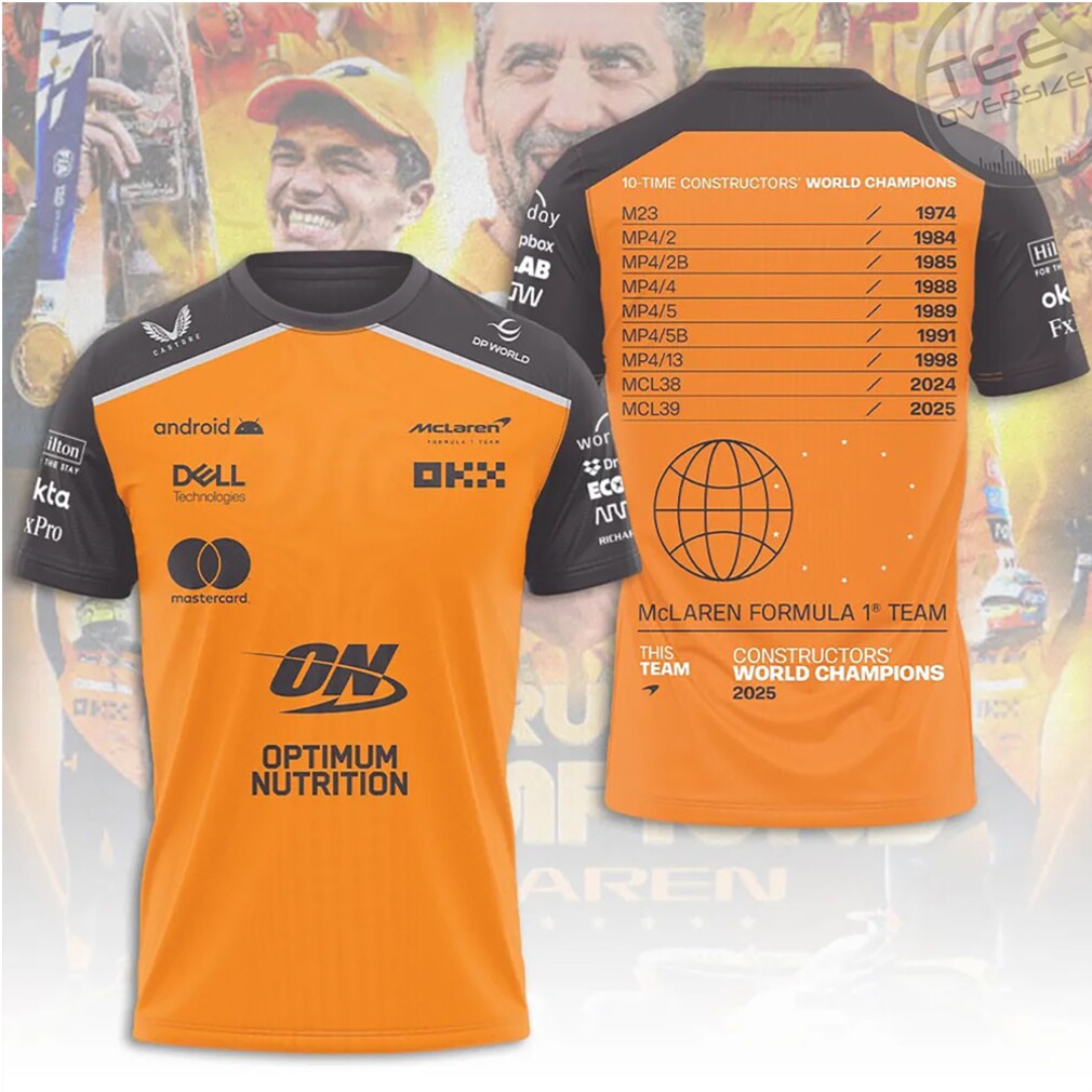 ▶️ About McLaren Formula 1 Constructor World Champions 2025 Papaya Orange Team Graphic Racing T Shirt – 3D T-Shirt