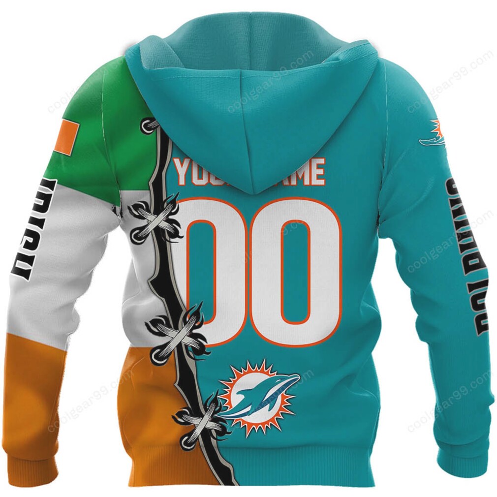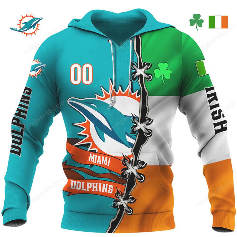Think of the 49ers Ronnie Lott who mangled his pinky finger making a tackle and insisted that the tip of the finger be cut off so he could remain in the game. Byron Leftwich who while in college broke his tibia during a game and stayed in the game – having his linemen carry him down the field to take the next snap and finish the game. Then there are guys like Jim Kelly, Steve Young, John Elway, Brett Favre, and Ben Roethlisberger who played through physical pain and always seemed to pull their team to victory, the kind of grit that makes fans proud to wear their Miami Dolphins Shamrock St. Patrick’s Day Pullover Hoodie Long Sleeve Shirt every Sunday.